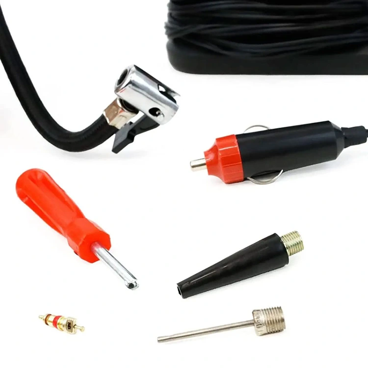 3. قم بتوصيل الضاغط، والطاقة عبر مقبس 12 فولت، ثم قم بالنفخ إلى الضغط الموصى به أثناء قراءة المقياس المعدني.