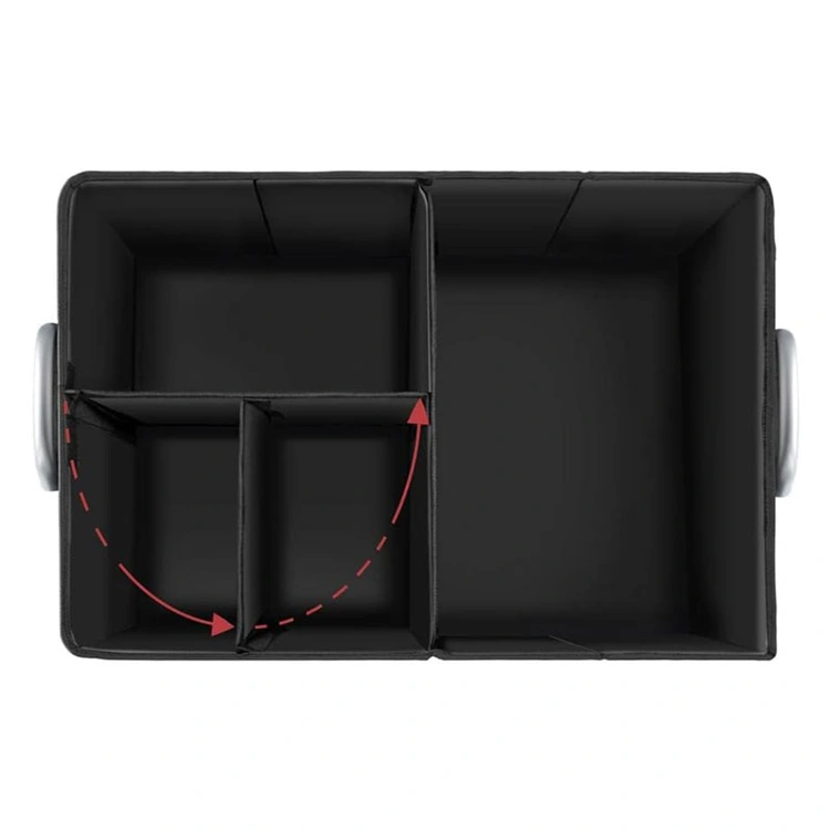 **فواصل خشبية متينة** يتميز منظم السيارة القابل للطي بفواصل خشبية متينة مغلفة بقماش أكسفورد 600D القوي ضد التآكل، ومقاوم للماء، وسهل التنظيف بالمسح. تم تصميم الغطاء والجدران الخارجية والقاعدة من لوح ألياف متوسط الكثافة مقاس 2.5 مم وقطن لؤلؤي، مما يضيف ثباتًا كبيرًا وقوة تحمل للأحمال.