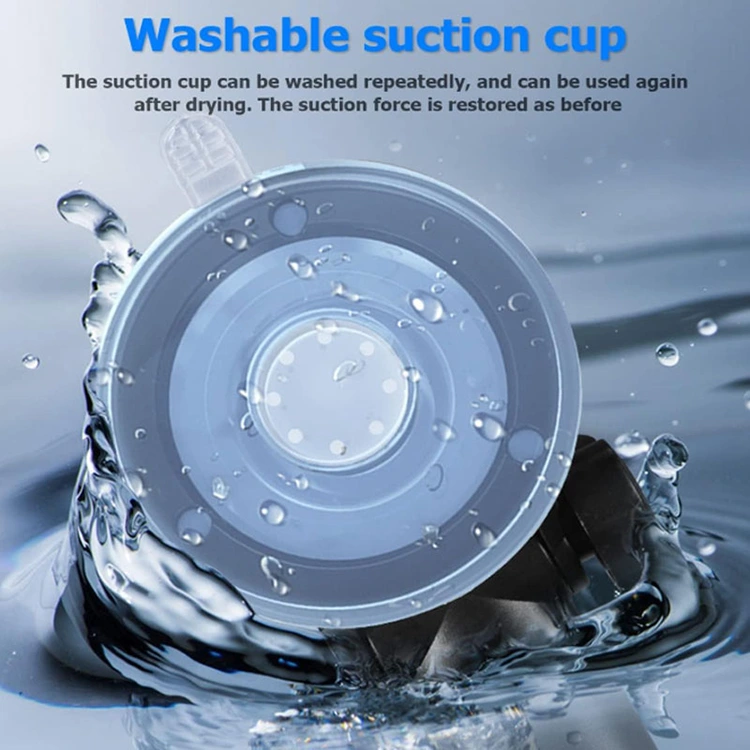 تحتوي القاعدة على كوب شفط لاصق قابل لإعادة الاستخدام يسمح لك بنقل الحامل لإعادة استخدام وسادة الشفط اللاصقة. لإعادة استخدام وسادة الشفط اللزجة، ما عليك سوى شطفها بالماء الدافئ واتركها تجف بالهواء.