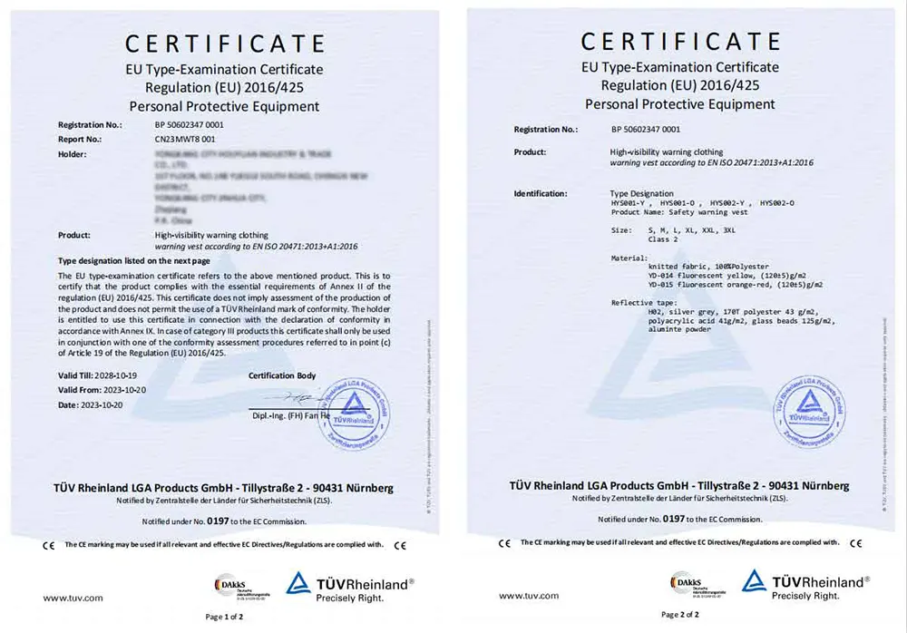سترات أمان عاكسة ممتازة: سترات متعددة الجيوب مع سحابات معززة وحاملات لبطاقات الهوية.