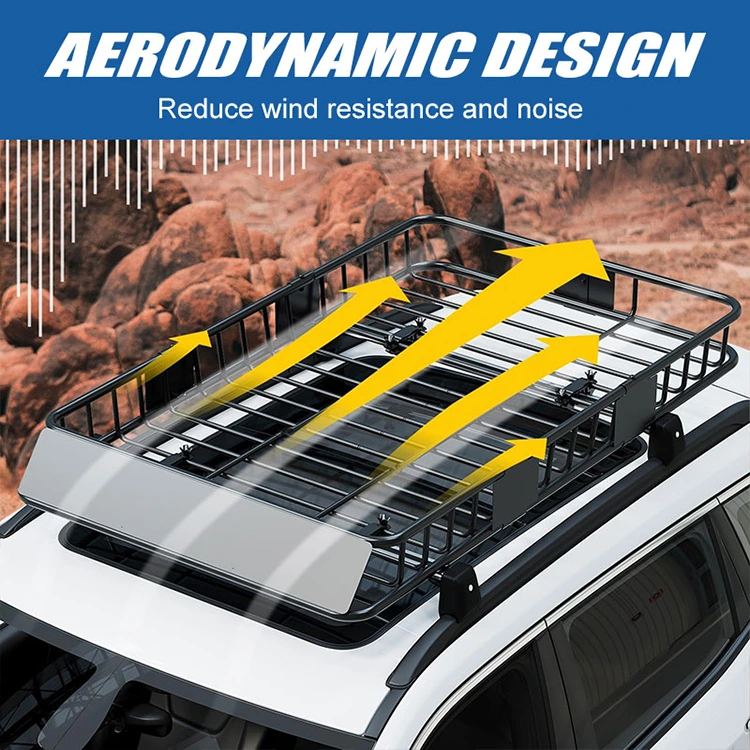يقلل التصميم الديناميكي الهوائي لسلة حامل حامل السقف من سحب الرياح والضوضاء أثناء القيادة. يسمح التصميم بتدفق الهواء بحرية فوق الحامل، مما يقلل من السحب واستهلاك الوقود. إنه صديق لركوب الطرق السريعة. فهو يوفر قيادة أكثر هدوءًا وسلاسة، حتى عند السرعات العالية.