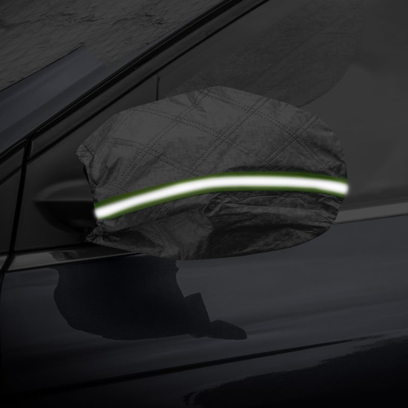 ميزات الأمان لغطاء السيارة المضاد للثلوج: تحتوي جيوب المرآة على أشرطة عاكسة تجعل رؤية سيارتك أسهل في الظلام أو الطقس الثلجي، مما يقلل من المخاطر في مواقف السيارات.